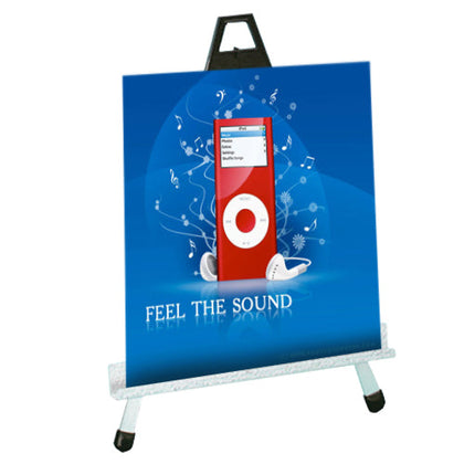 Tabletop Easels are durable and built to last. Constructed of metal aluminum, our Easel Counter Stand Displays with Shelf are perfect for hotel lobbies, theatres, tradeshow floors and other environments where durability and aesthetics count.
