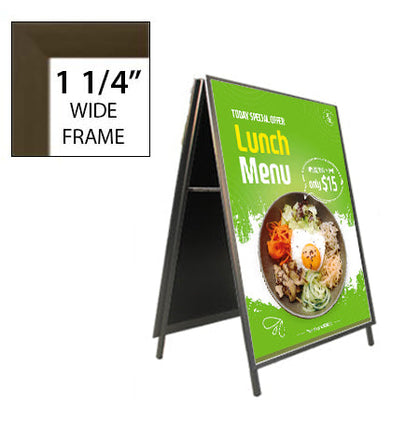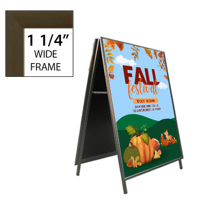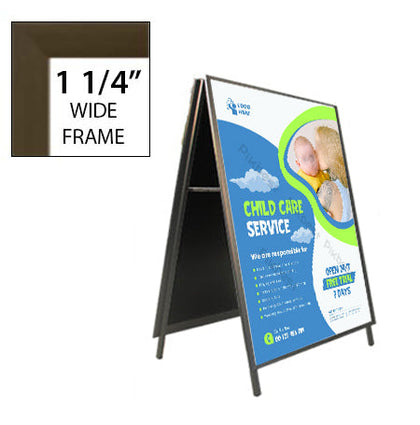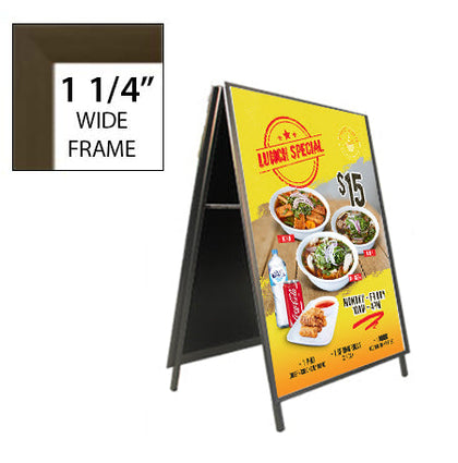 Displaying your 18"x36" size poster, sign or graphic makes the A-Frame floor stand a snap to use when it comes to updating your insert. It features quick changing snap open frames