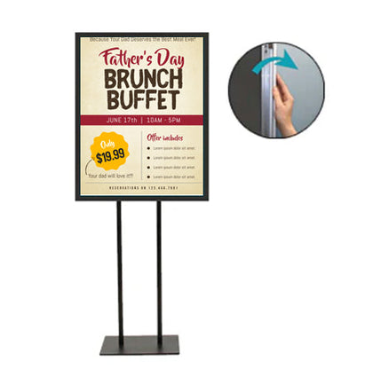 Displaying your 16x16 poster, sign or graphic makes the double pole floor stand a snap to use when it comes to updating your printed insert. It features quick changing, 16x16 snap frames.