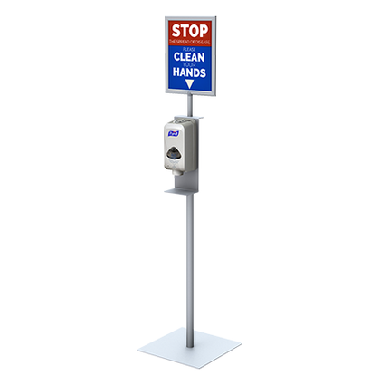 Hand Sanitizer Floor Stand 8.5 x 11 Snap Frame Sign Holder, 16.9oz Dispenser