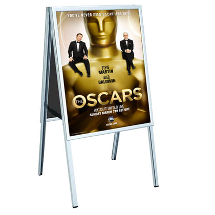 The durable aluminum construction A-Fame sign holder features two frames sides. You can display two of the same 22x28 posters or two different signs or posters. So your message or announcement can attract attention coming and going.