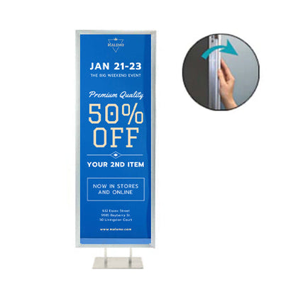 When ordering the poster stand, choose either one 27x39 frame for single-sided viewing or two snap frames for double-side viewing.