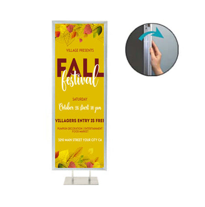 When ordering the poster stand, choose either one 40x60 frame for single-sided viewing or two snap frames for double-side viewing.