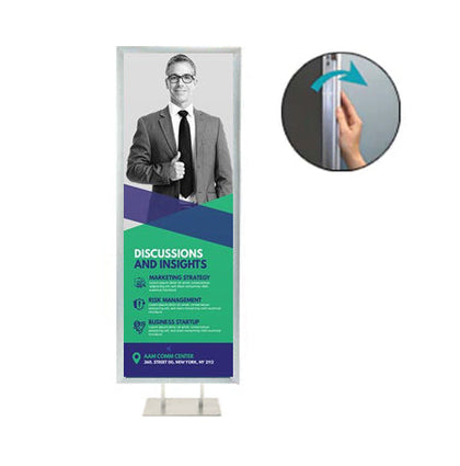 - Floorstand Snap Frame: Singled Sided (1 Frame) or Double Sided (2 Frames)