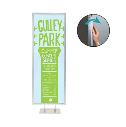 Displaying your 40x60 poster, sign or graphic makes the double pole floor stand a snap to use when it comes to updating your printed insert. It features quick changing, 40x60 snap frames.