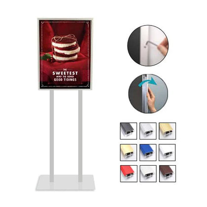 Double Pole Floor Sign Holder with Tamper Proof 13x19 Frame Design