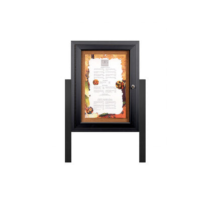 Two sturdy 8 Ft. metal leg posts mount easily to the pre-drilled sides of your outdoor enclosed menu case. When installing your menu cabinet, secure leg posts 3 feet into the ground.