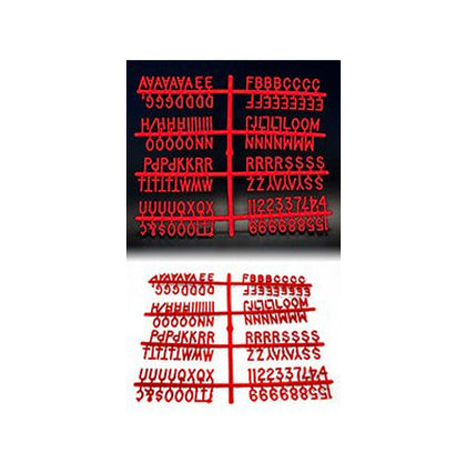 For indoor or outdoor use. The plastic changeable letters painted RED come packaged in a SPRUE TREE (simply break them off and drop them into your own storage area). The Plastic Letters are spray painted with a special coating that won't crack, peal or chip.